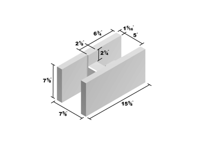 Nominal Dimensions are those used in stating unit size. They are equal to the specified dimension, plus the thickness of the mortar joint. The nominal dimensions compensate for a 3/8-inch joint for precision and split face, and a 1/2-inch joint for slump block. (For example: if the specified dimension of the most common size precision block is 7-5/8" x 7-5/8" x 15-5/8", the nominal dimension of that same precision block is 8 x 8 x16).